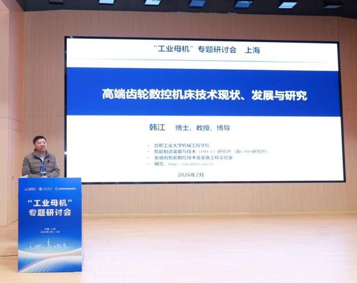 202621-2日,由制造技术与机床杂志社、上海交通大学机械系统与振动全国重点实验室主办,通用技术集团机床工程研究院有限公司、中国机械工程学会生产工程分会等承办的“工业母机”专题研讨会在上海交通大学机械与动力工程学院举行,中国工程院院士、中国机械工程学会理事长、上海交通大学原校长、上海交通大学林忠钦教授,通用技术集团机床工程研究院副院长樊立新教授级高工,通用技术集团机床工程研究院原书记、制造技术与机床编委会主任/主编黄正华教授级高工等来自国内工业母机领域的著名专家、学者、工程技术人员约150余人参加了研讨会。林忠钦院士、樊立新教授级高工、黄正华教授级高工致辞,十一位专家做主题报告,韩江教授应邀做《高端齿轮数控机床技术现状、发展与研究》系统介绍了高性能齿轮对高端齿轮数控机床的新要求,高端齿轮数控机床及数控系统、加工技术国内外现状、差距与发展趋势,合肥工业大学IMET研究所40多年坚持高端齿轮数控机床及数控系统关键技术研发成果与应用取得的成绩,受到与会专家的高度关注和认可。